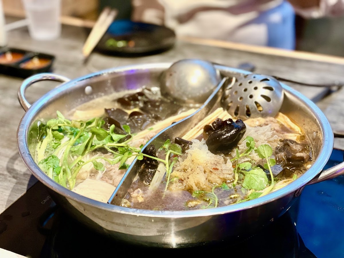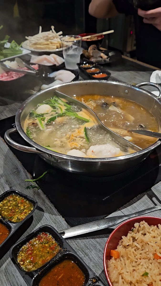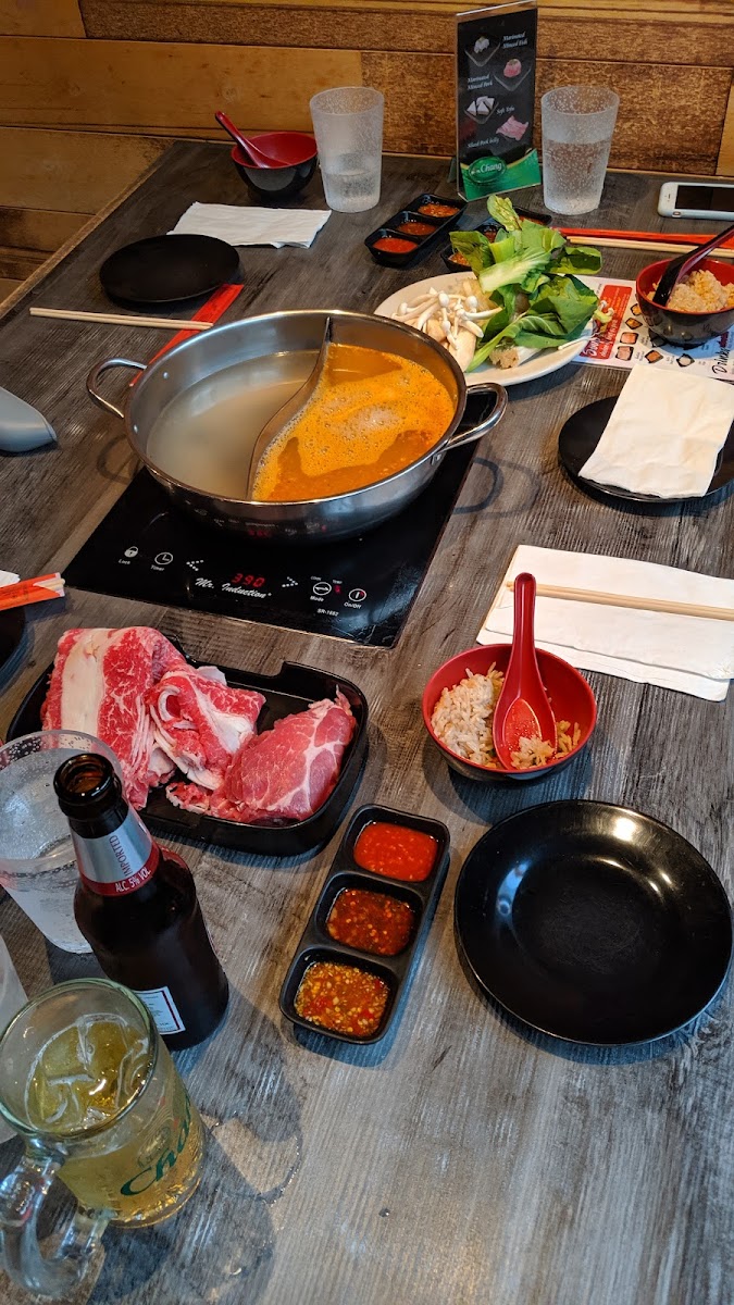 My first time trying hot pot and man what an amazing experience!! Such a great atmosphere and amazing food!! The Jaew Hon broth was superb and the sauces for the soup and bbq were phenomenal!