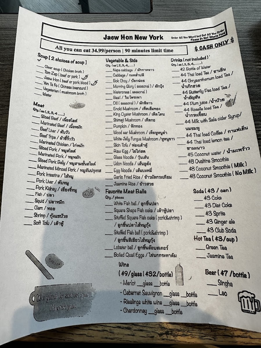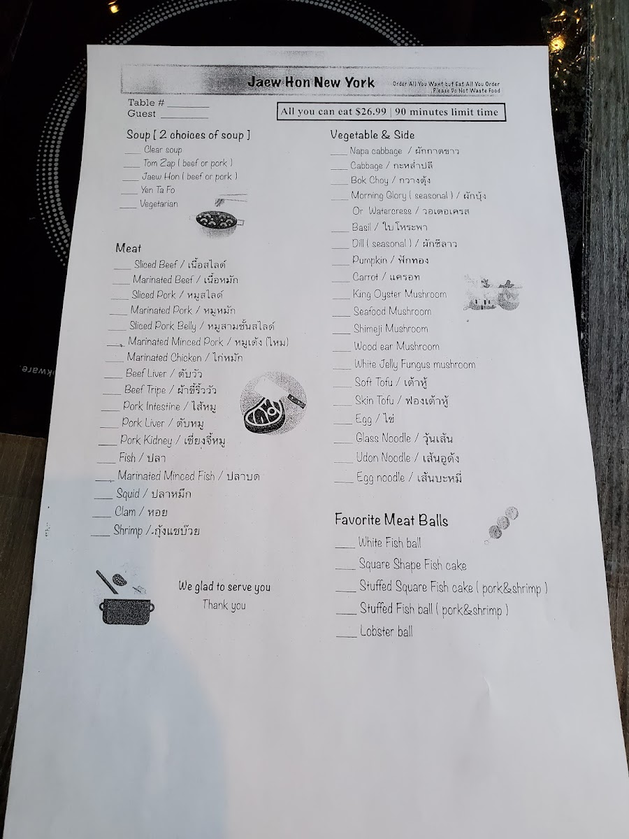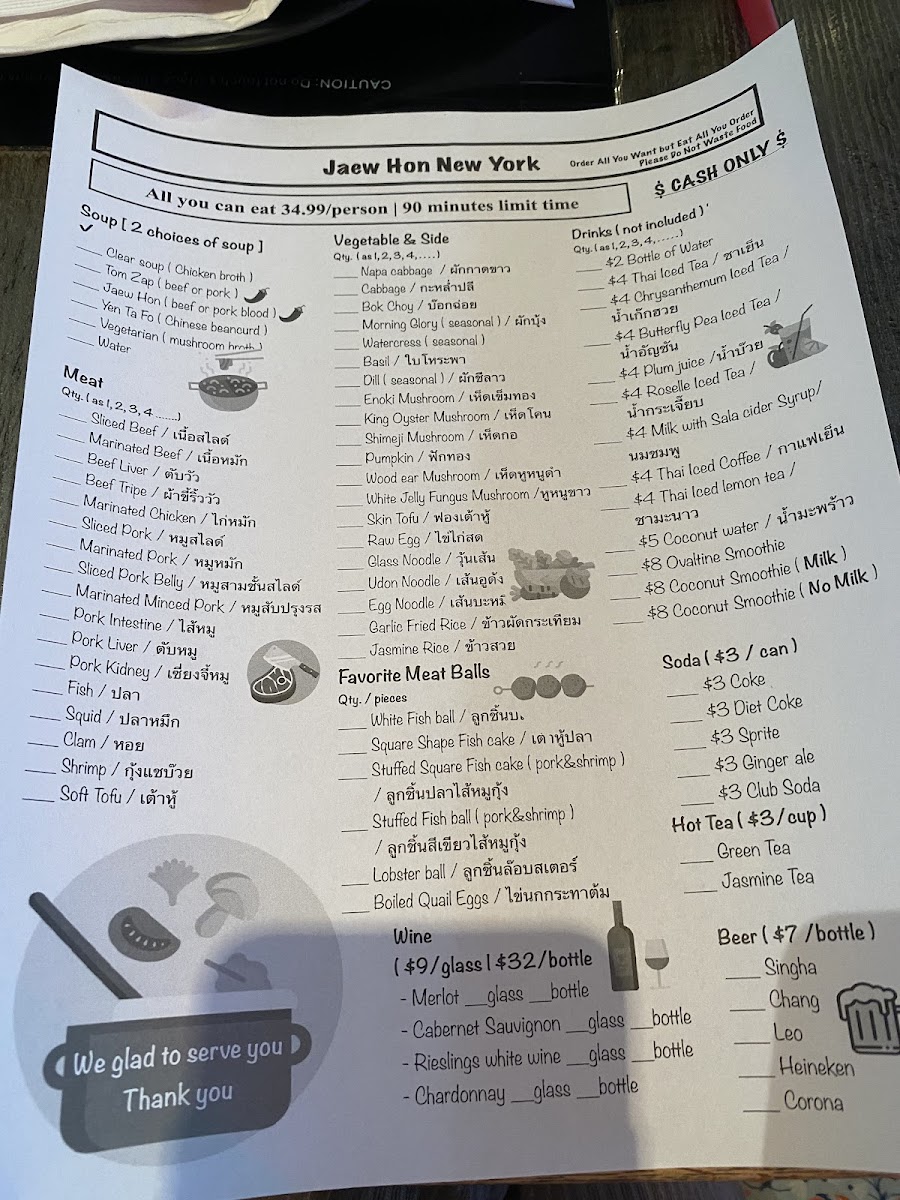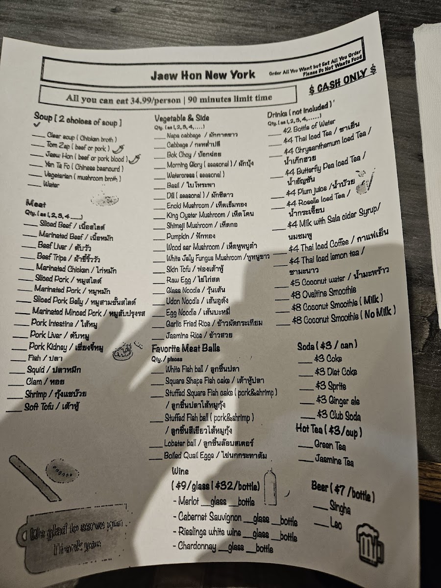 The menu at Jaew Hon offers a comfortably casual dining experience centered around authentic Thai hot pot and a selection of flavorful dishes and drinks. It’s well-suited for sharing with friends or family, whether you’re settling in for a relaxed dinner or enjoying a lively gathering. The food focuses on fresh ingredients and balanced flavors, with highlights like Thai hot pot served alongside rich, savory broths and a variety of dipping sauces that invite personalized tastes.