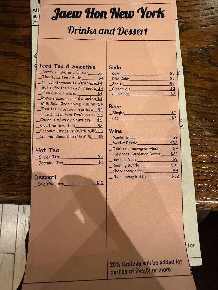 Jaew Hon Menu